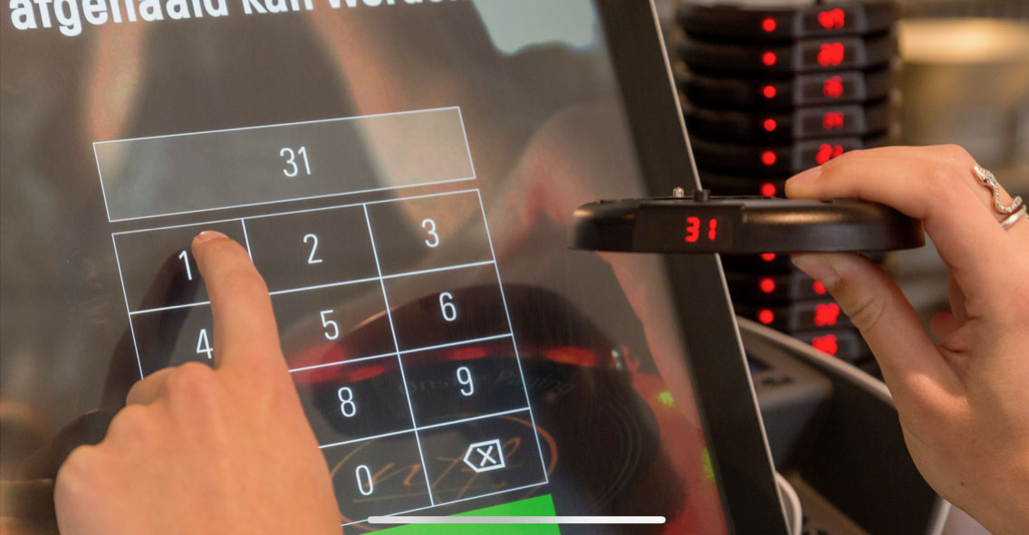 Zodra de bestelling door de klant in de zuil wordt ingegeven zal in het display de vraag worden gesteld om een coaster uit de houder te nemen. Hierna wordt de klant verzocht het nummer van de coaster in het display in te voeren en zal het nummer van de desbetreffende coaster op de bestelbon in de keuken worden geprint. Zodra de bestelling gereed is kan met een transmitter van VeDoSign de coaster worden geactiveerd.